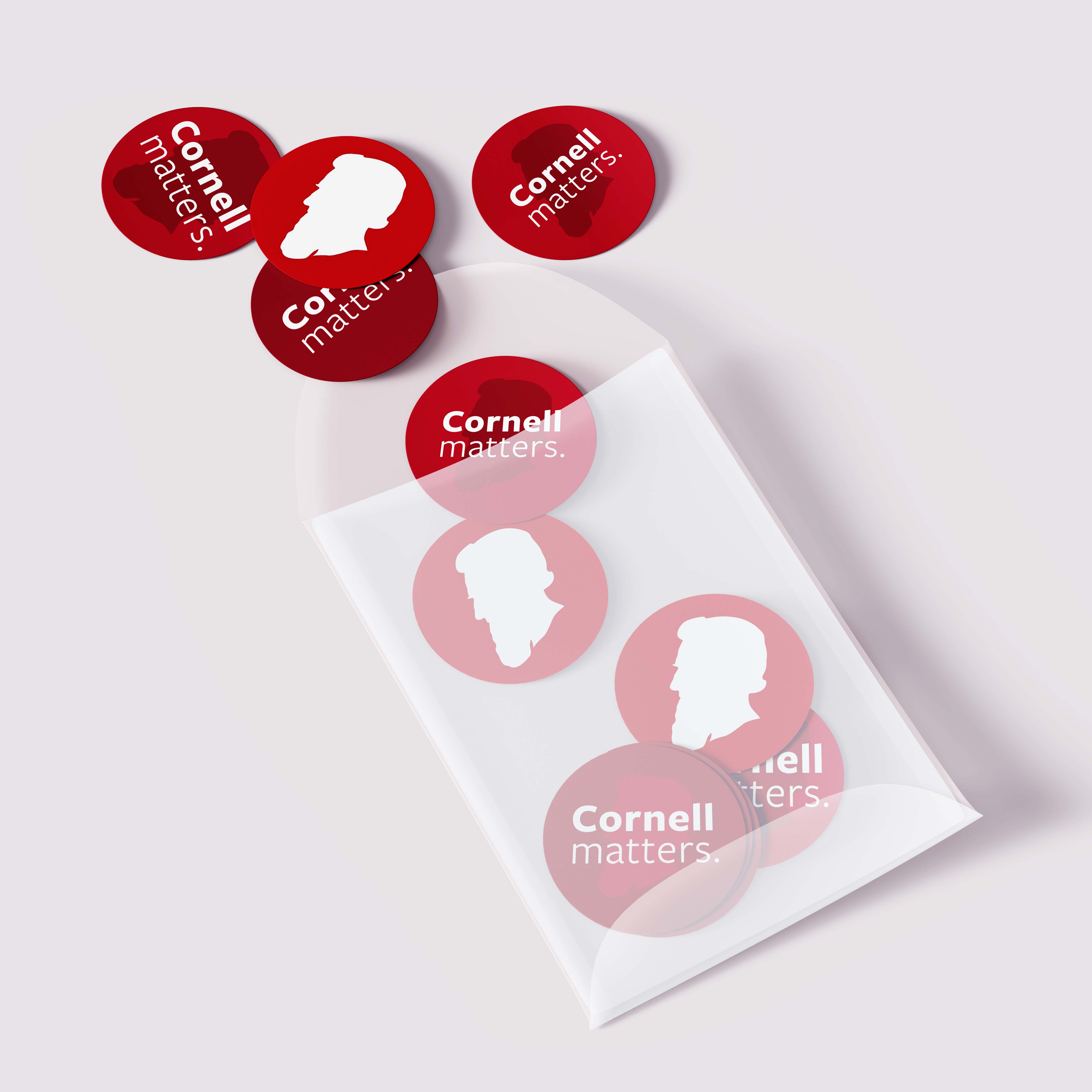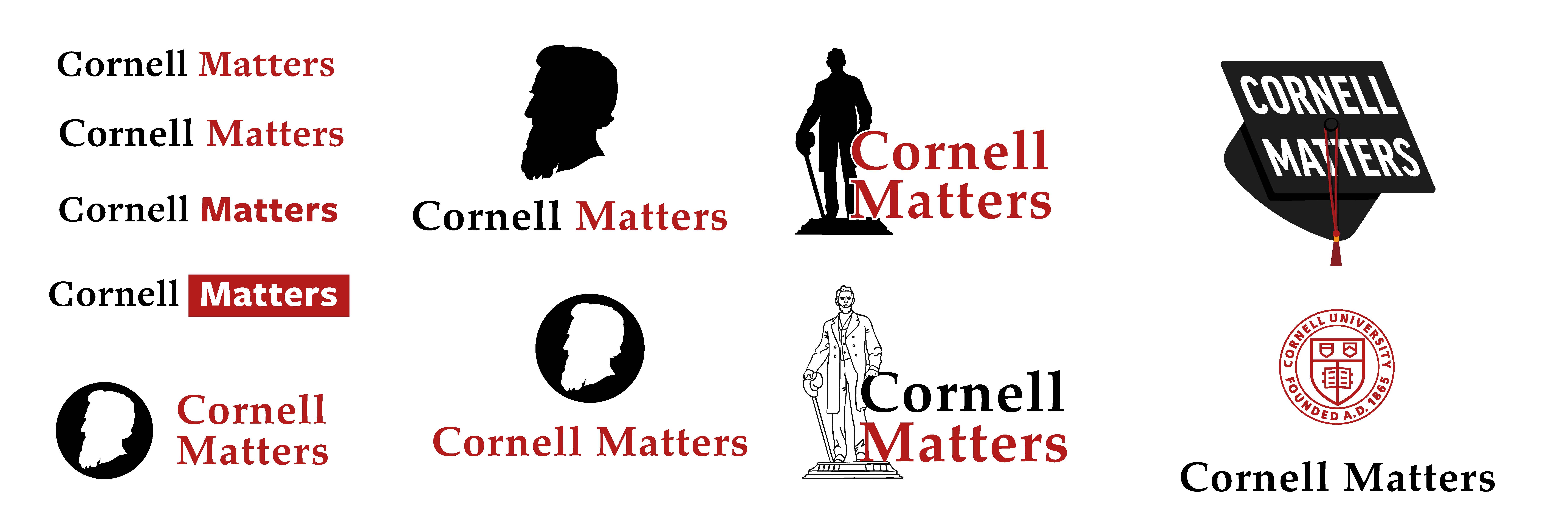 Understanding the weight of this initiative meant balancing existing institutional branding with the need for something unique. Since initiatives like Research matters already existed at Cornell, drawing on the established type style created a clear connection between the two campaigns. However, incorporating the Ezra Cornell silhouette distinguished Cornell matters and introduced a visual element that could be woven consistently into materials.